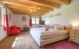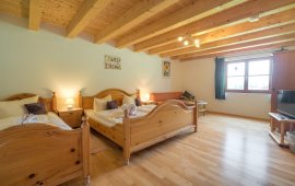 Dreibettzimmer mit Fußbodenheizung, Ausziehcouch vorhanden für 1 Person mehr, TV, separates Bad mit Dusche/WC und Föhn, Fester mit Blick in Richtung Norden.